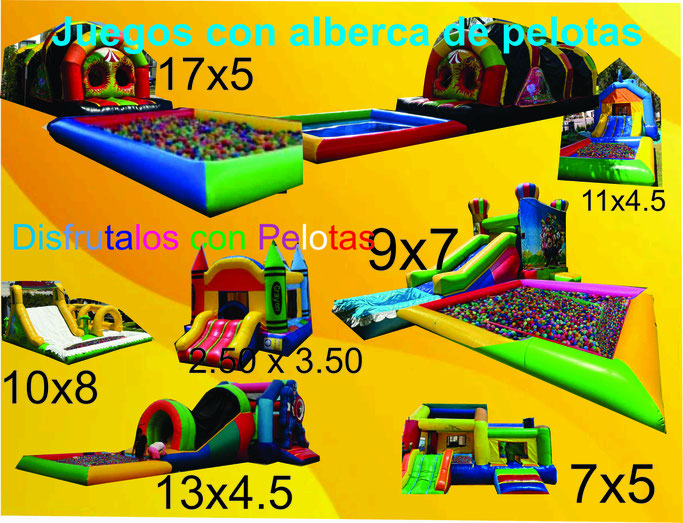 paquete trampolin $950 , inflables $2100, alberca de pelotas 4x4 $1800 = $3950